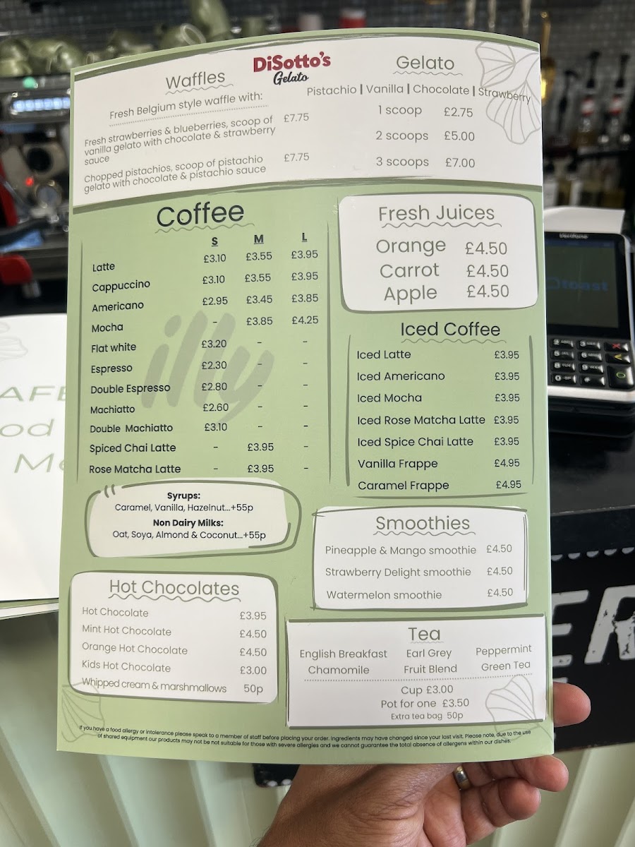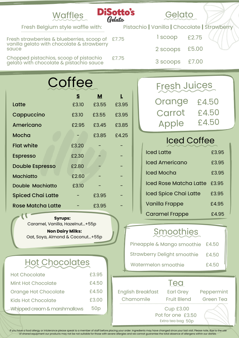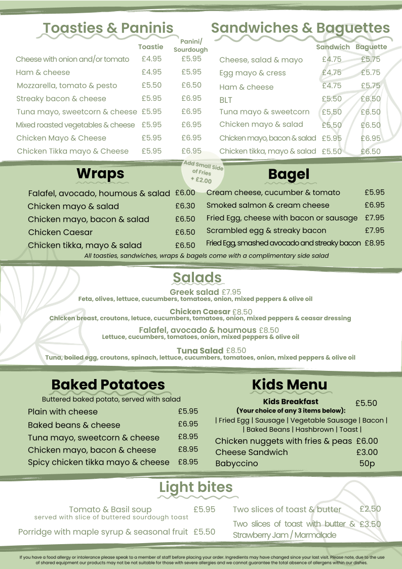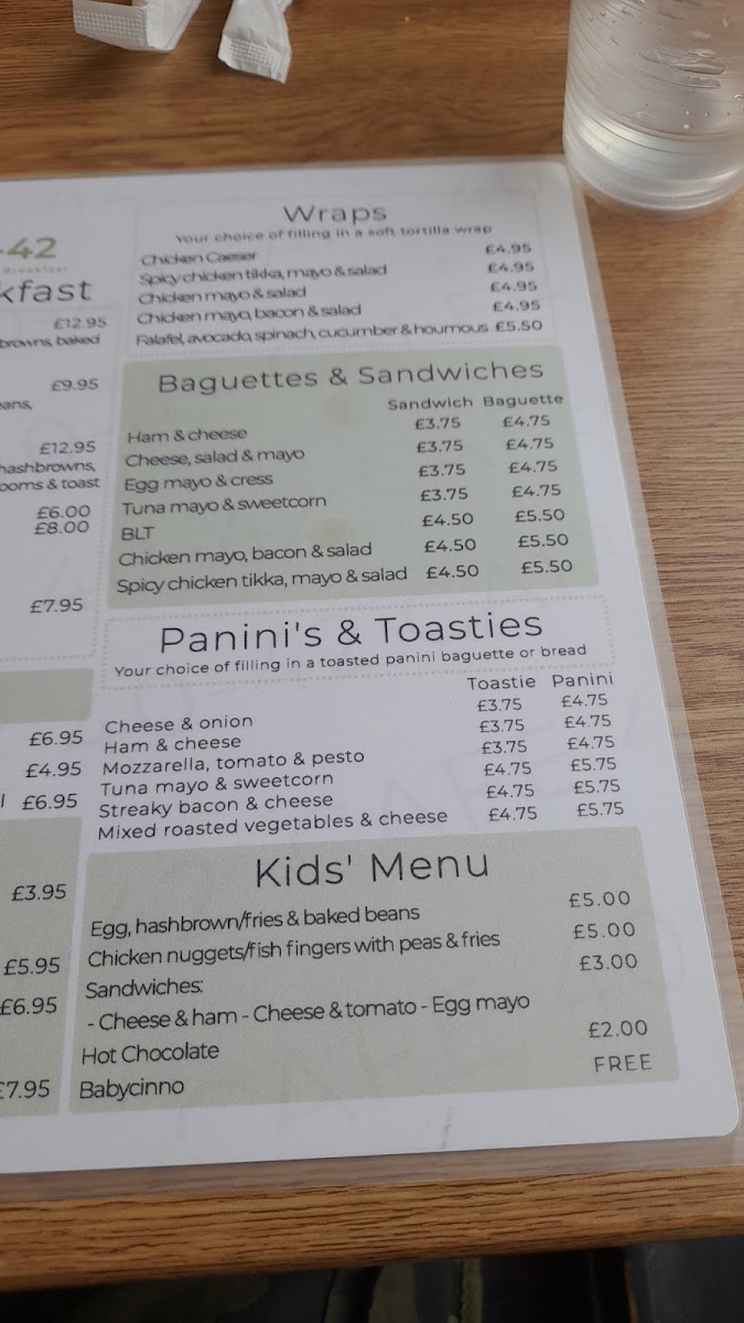 The menu at CAFE 40-42 offers a variety of options suitable for breakfast, light meals, and beverages. Visitors can choose from freshly prepared paninis and toasties featuring combinations such as cheese with onion or tomato, ham and cheese, mozzarella with tomato and pesto, streaky bacon with cheese, tuna mayo with sweetcorn and cheese, and mixed roasted vegetables with cheese. These items provide a range of savory choices for casual dining or a quick bite.